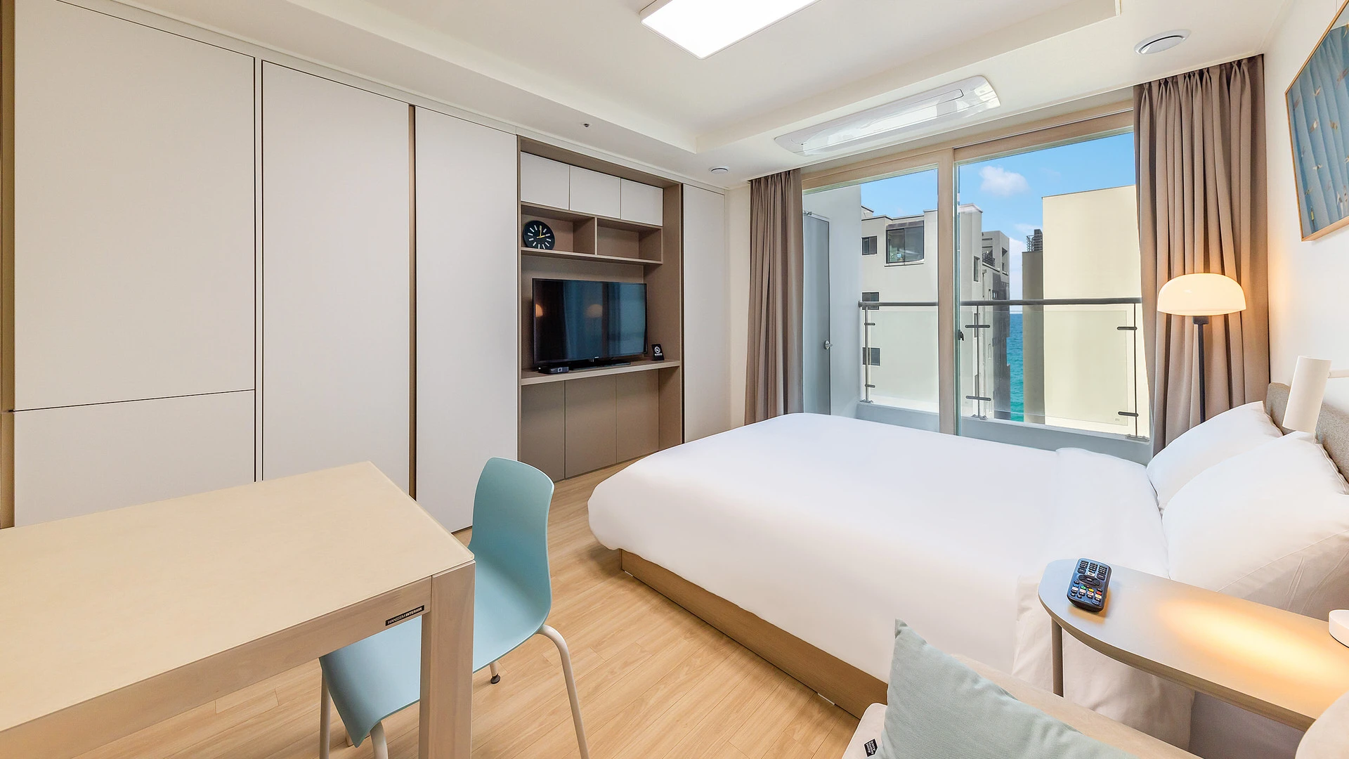 • 집기품목 : TV, 냉장고, 에어컨, 전자레인지, 커피포트, 바디워시, 샴푸, 린스, 타월, 드라이기, 와이파이, VOD, 욕실용품, OTT, 바다전망