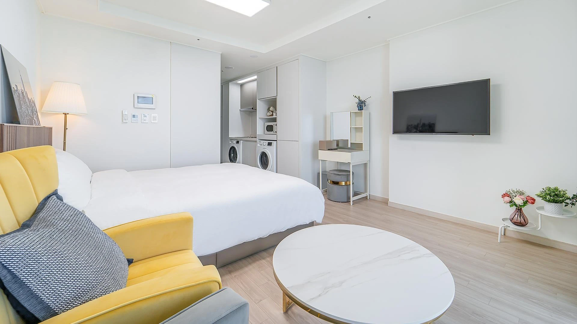 - 집기품목 : TV, 금연, 건조기, 냉장고, 드라이기, 바디워시, 린스, 세탁기, 샴푸, 에어컨, 와이파이, 인덕션, 전자레인지, 타월, 테라스, 취사시설/도구, 커피포트, OTT, 바다전망