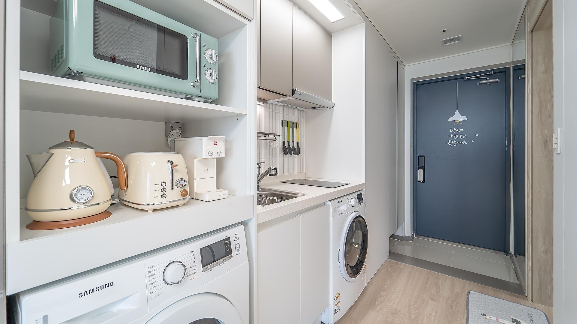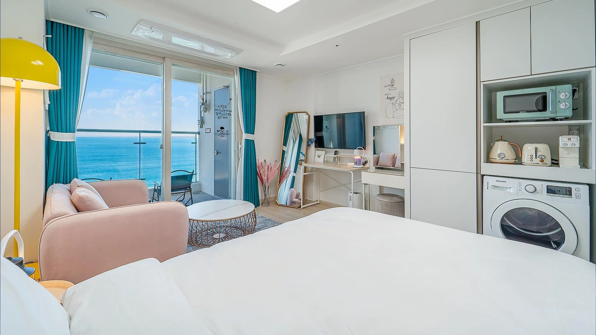 - 집기품목 : VOD, 욕실용품, TV, 금연, 건조기, 냉장고, 드라이기, 바디워시, 린스, 샴푸, 세탁기, 와이파이, 에어컨, 취사시설/도구, 인덕션, 전자레인지, 테라스, 커피머신, 타월, 토스트기, 커피포트, OTT, 바다전망
